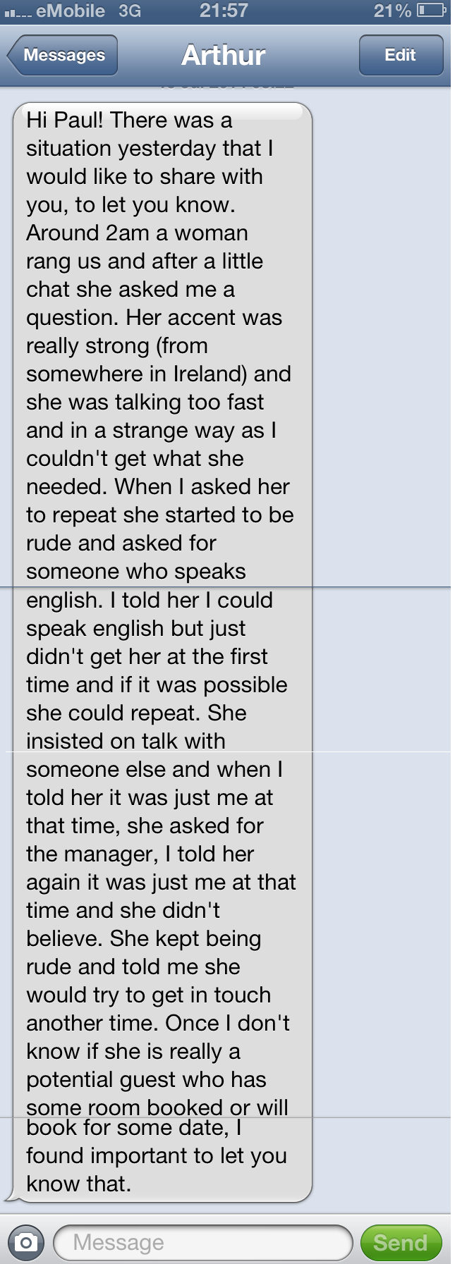As you can sense from the message, poor Arthur was clearly shaken by this mad woman.