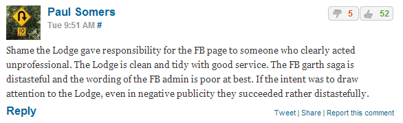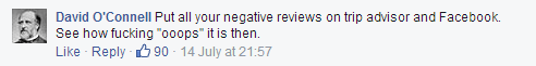 As the evening continued, there was no need for Manuel to defend the hotel anymore. The garthritis suffers thankfully removed themselves from the page to make way for all the supporters. I guessed they realised how fucking stupid they had been acting. Unlike the day before when for every 1 supporter there were 9 haters, the tables had turned completely in our favour. For every 1 hater there were at least 15-20 supporters. We had turned the situation around completely.