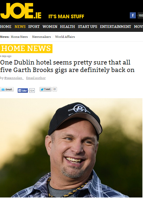 Newstalk – http://www.newstalk.ie/Dublin-hotel-apologises-after-telling-customers-Garth-Brooks-concerts-were-on