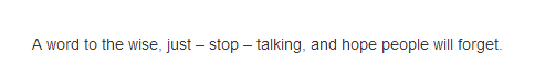 “A word to the wise, just – stop – talking, and hope people will forget” – she seems to use this phrase with mammoth gusto and immense aplomb. Could it be something she repeats over and over whilst doing her makeup in the morning? Your guess is as good as mine, I guess.