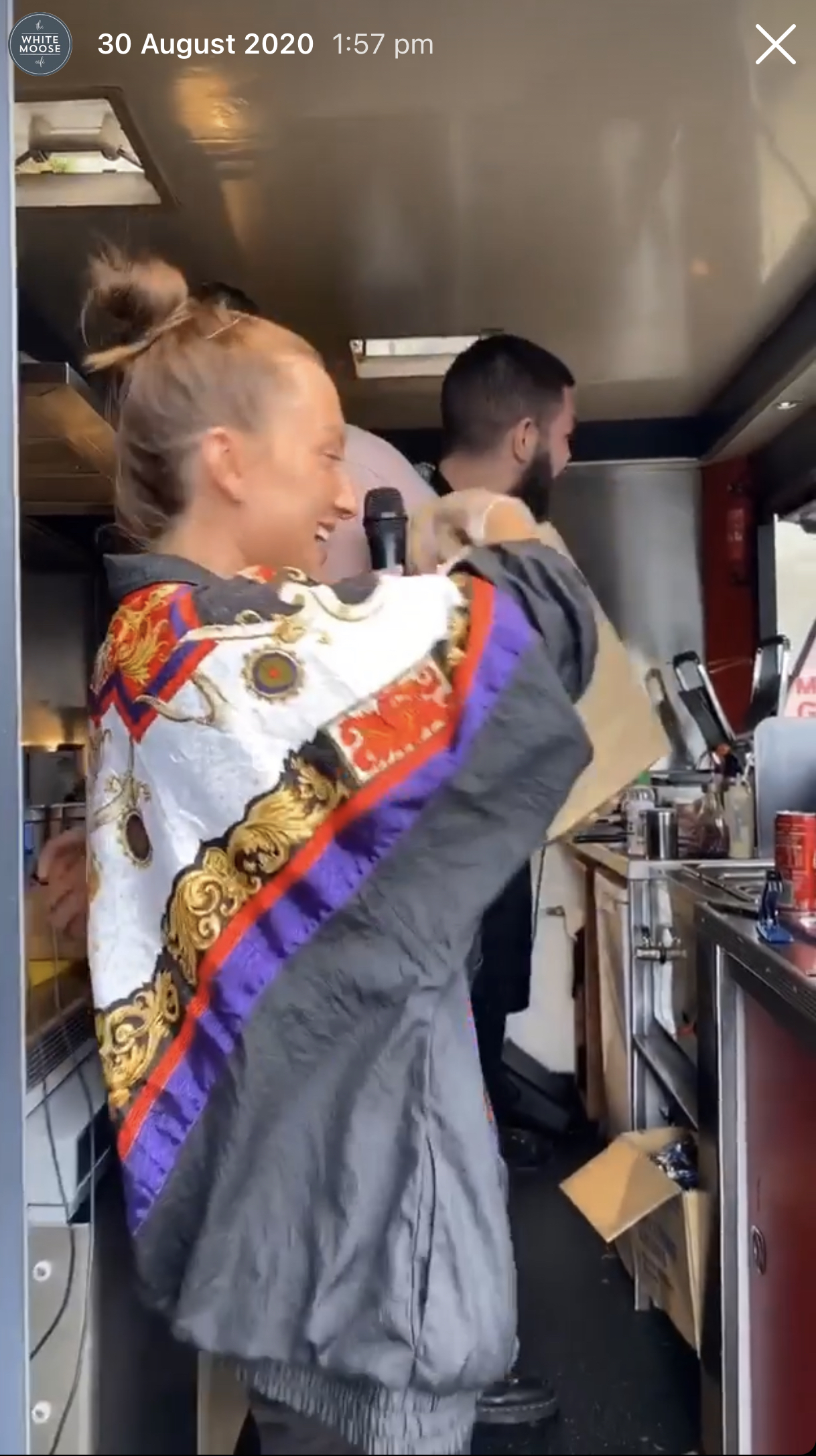 When you look back at past instagram stories, Mrs D.J. happens to be wearing a jacket whilst working in the good truck. It’s a jacket that could only be described as a beautiful, kaleidoscope of colour. Had I had the foresight to make the White Moose uniforms so kaleidoscopically beautiful, I probably would have. Ours are almost boring in comparison. I guess the moral of the story is that Mrs D.J. may have been telling white (moose) lies in her tweet. Hence why I’d say she was going through a very confused part of her life.