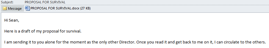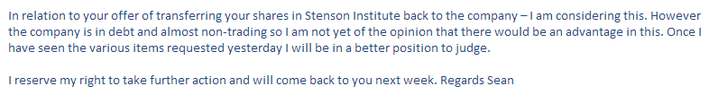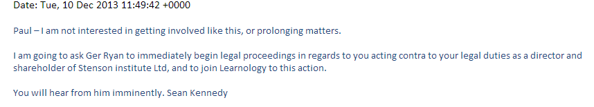 (e) Legal representation. Believe it or not, I have already received a number of offers of legal representation from blog readers. Having read the blog, they said that I may well have a case against Sean & Co., and that they would be willing to consider representing me on a no foal, no fee basis. My initial reaction to them was that of ‘meh’, but then when I thought about the suit-buying opportunity this would present, my opinion changed completely. I’m a little conflicted now however; if I did go to court and had to breathe the same air as BS in the courtroom, I think I might be traumatised for life. So, let’s just say ‘the jury is out’ on this option.