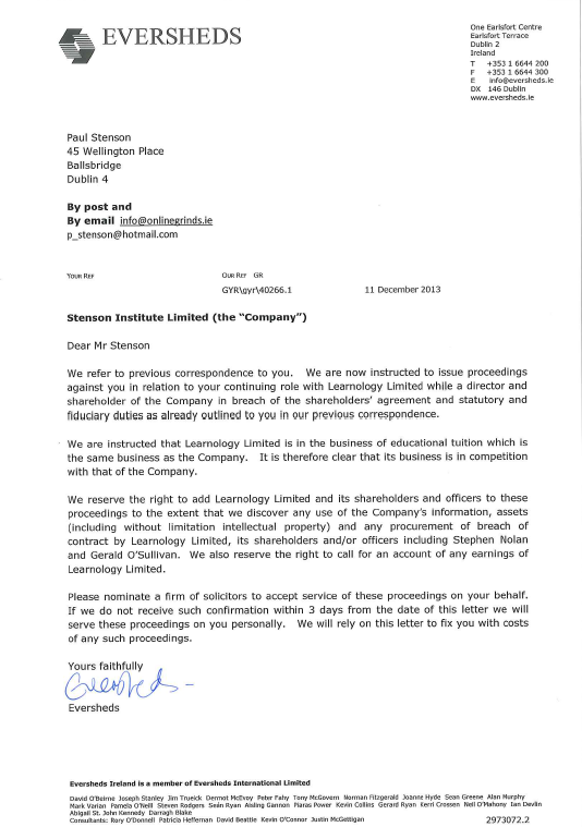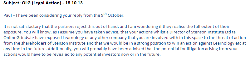In case the Kearns family from the Institute of Education and Sean & Co. from OnlineGrinds.ie (for example) are pooing their pants at the thought of Paul Stenson slating them on his new website. Please don’t worry guys. Paul won’t be doing any slating whatsoever; the students and parents will. However, if you get your act together guys i.e. stop ripping people off IOE, and get your business model right OLG, you won’t give them any reason to slate you; you may even give them reason to praise you. We know how damaging the likes of Patrick’s Tweets in yesterday’s chapter can be for your business. Don’t give students like Patrick any bait in the first place, and all will be well.